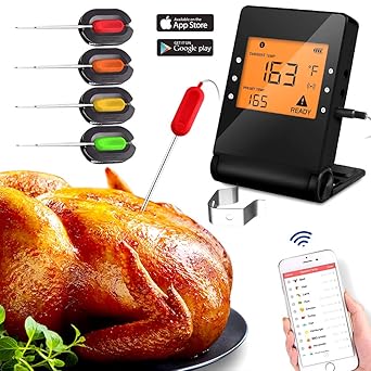 Amazon Com Wireless Meat Thermometer Smart Bluetooth Digital Cooking Bbq Grill Smoker Kitchen Oven High Low And Range Temperature Alerts Ios Android Long Range Usa Customer Service Kitchen Dining