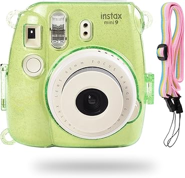 Amazon Com Katia Glitter Case Compatible For Fujifilm Instax Mini 9 Mini 8 Instant Film Camera With Rainbow Strap Lime Green Camera Photo