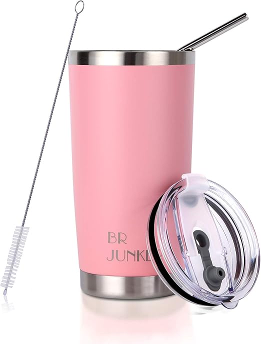 Amazon Com 20 Oz Tumbler Double Wall Stainless Steel Vacuum Insulation Travel Mug With Crystal Clear Lid And Straw Water Coffee Cup For Home Office School Ice Drink Hot Beverage Pink Kitchen