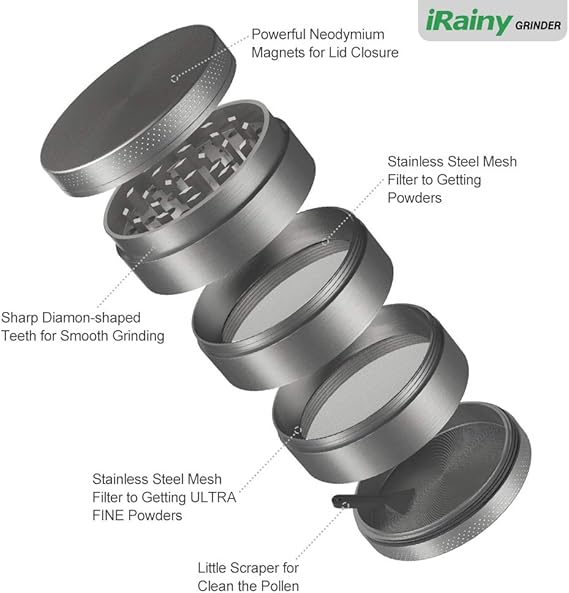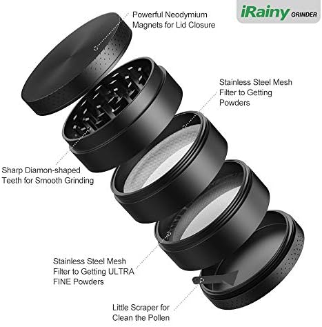 Herb Grinder Irainy 5 Piece Spice Grinder With Dual Chamber And Pollen Catcher 2 1 Inch Black Amazon Co Uk Kitchen Home