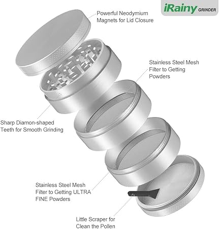 Irainy Zinc Para Especias Hierba Hierbas Molinillo Con Pollen Catcher Grande 2 5 Pulgadas 4 Piezas Amazon Es Hogar