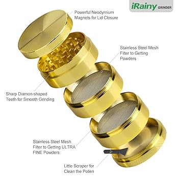 Buy Irainy 5 Piece Spice Herb Grinder With Pollen Catcher 2 1 Inch Metal Gold Online At Low Prices In India Amazon In