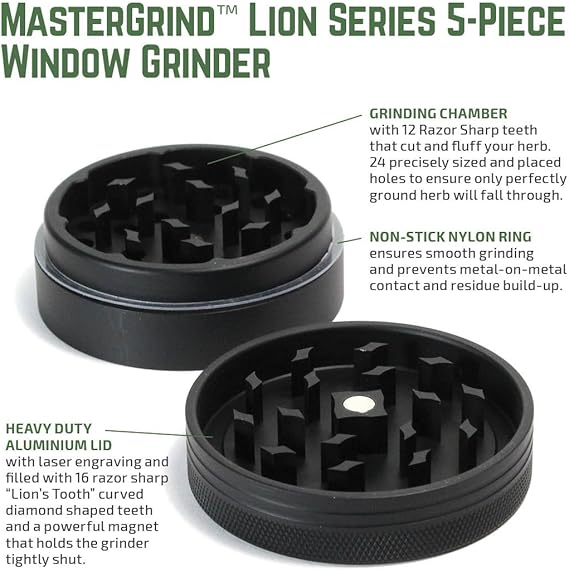 Masterdam Grinders Lion Series 5 Piece Herb Grinder With Removable Micron Screen 55mm 2 2 Inch Matte Black Aluminium Amazon Co Uk Kitchen Home