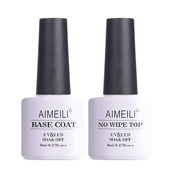 Amazon Com Aimeili Soak Off Uv Gel Polish Base Coat And No Wipe Top Coat Set 2x8ml Upgraded Formula Long Lasting Mirror Finish Gel Polish Beauty