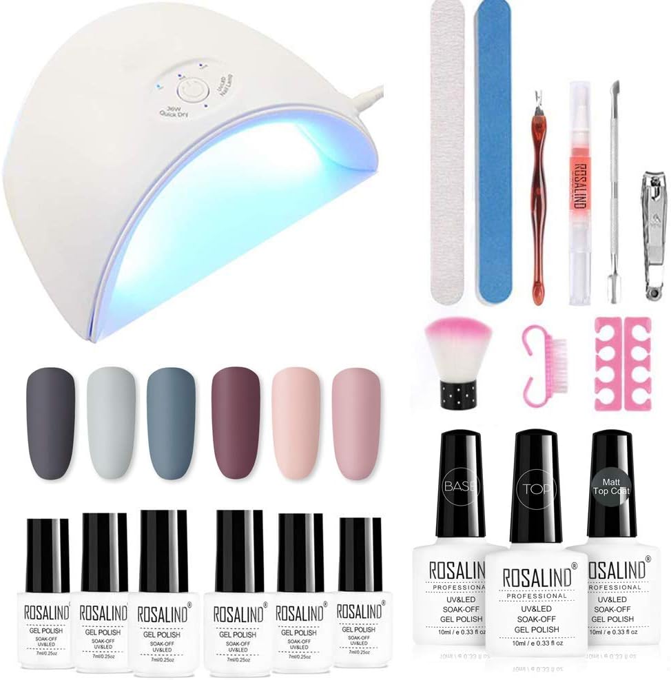 Rosalind Gel Nail Polish Starter Kit With 36w Uv Led Light Nail Lamp Base Top Coat 3 Timer Setting Soak Off 6pcs Autumn Nail Art Nude Colors Set Manicure Tools Amazon Ca Beauty