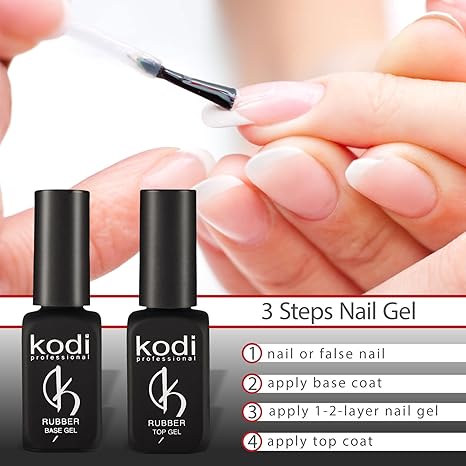 Amazon Com Professional Rubber Top Base Gel Set By Kodi 12ml 0 42 Oz Soak Off Polish Fingernails Coat Kit For Long Lasting Nails Layer Easy To Use