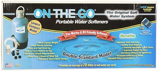 On the go otg3 ntp 1ds double standard water softener. 74 on the go otg3ntp1ds double std water softener 4 5 out of 5 stars 69. About on the go. This item on the go otg3ntp3m portable water softener on the go otg3ntp1ds double std water softener mobile soft water 12 800 gr rv portable manual softener w salt port includes lead free nsf 61 certified connections used by recreational vehicle enthusiasts boaters and highly mobile people.
