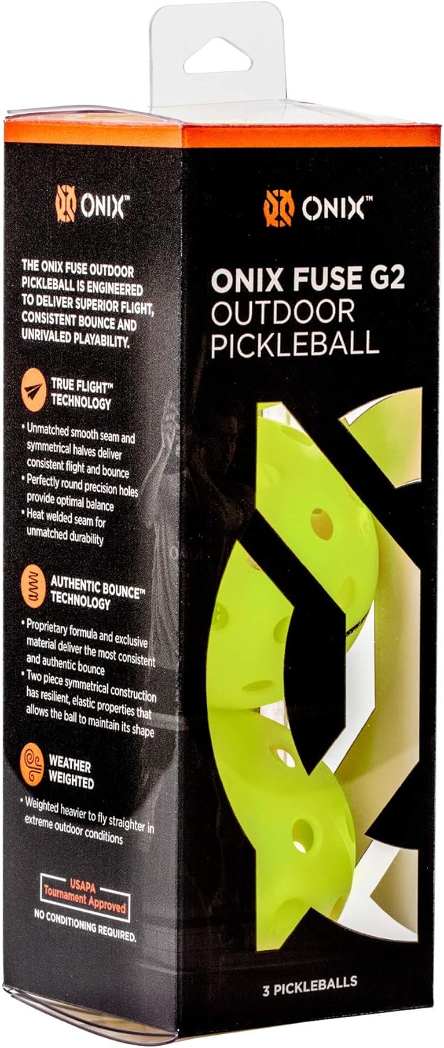 Outdoor 3 pack ready to play right out of the box the all new onix fuse pickleball creates a consistency between the indoor and outdoor game. This ball strikes a balance between a pleasant softer feel with just enough hardiness to meet usapa guidelines so that they can be used in official tournament play. Onix fuse g2 outdoor pickleball exceptional seam welding offers greater durability and resists splitting. Ready to play right out of the box the all new onix fuse g2 pickleball create a consistency between the indoor and outdoor game.