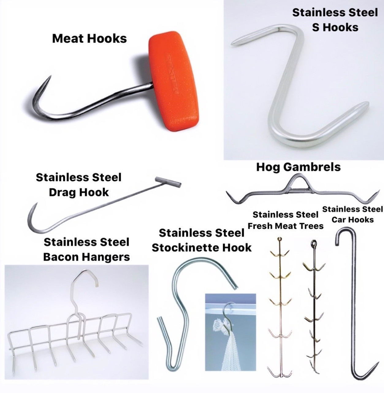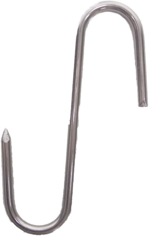 Original stainless steel meat hooks. 9 inch s hook meat hooks stainless steel meat processing butcher hook pot. A good butcher s hook helps you keep your game in an accessible steady position while you do the dirty work so you can be more precise with your cuts and ensure your own safety as you go. Stainless steel meat hooks a good butcher whether they work in a commercial kitchen or just run a diy operation out of their own home needs a reliable supply of meat hooks for butchering with ease. Stainless steel s hook 1 2 x 10 solid 18 8 type 304 stainless steel sharp smooth points electropolished to a bright smooth finish 700lb weight limit list price.
