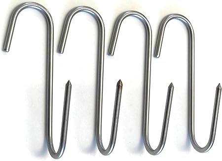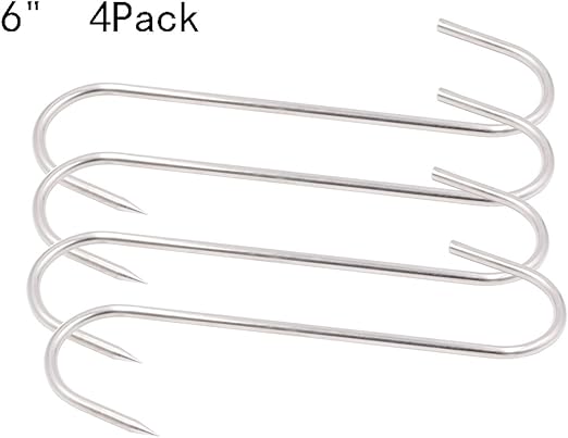 These are the same pbc original stainless steel meat hooks that come in the pit barrel packages sold in sets of 4. Meat hooks s hook stainless steel meat processing butcher hook pot hooks 4 6 out of 5 stars 126. One end sharpened for easy insertion into meat easy to clean after use ideal for meat processing butchers hunters meat hanging drying and smoking can also be used for hanging your pot and pans. Lavalock meat hooks rib hangers stainless steel for uds wsm bbq smokers 6 pack.