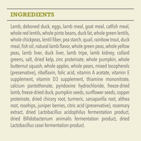 Orijen dog food ingredients analysis. Orijen original freeze dried food is loaded with free run chicken and turkey wild caught herring and flounder and cage free eggs all delivered to our kitchen raw from people we know and trust. Additional ingredients breakdown aside from the top five ingredients there are several other notable ingredients found in orijen adult dry dog food. Additional necessary nutrients such as vitamins minerals and antioxidants come from fresh fruits botanicals and veggies. The first two are fresh chicken and turkey which are good quality meats.