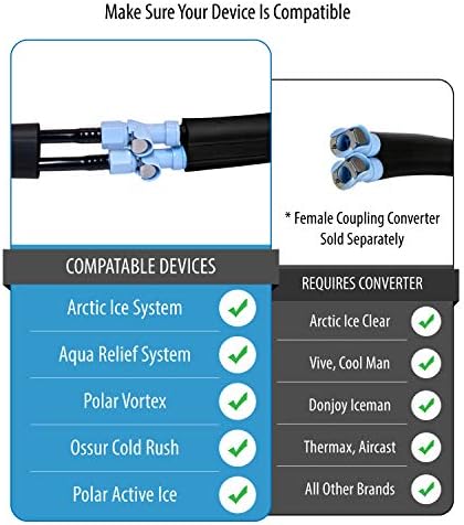 Unplug unit before filling it with ice and water. Ice must be cubed only. Read the instructions which are located inside the unit the instructions for the pad and the labels on the device carefully before operating the cold rush cold therapy system. Now attach your wrap to the feeder hose.